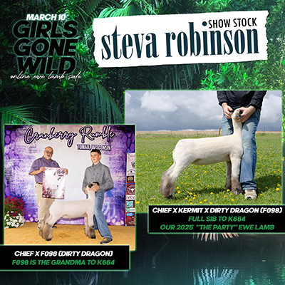 A creasy backed, big racked, round bodied one with a big time Urban ewe backing her - K620 is a maternal sib to the Champion Cross at LSU in 2024, Lilli Berget's lightweight class winner at the 2023 WI State Fair, Lilli Berget's 2025 Unicorn wether, and a sporty Frog daughter from last year's crop. The mom of K620 goes back to Wes Berget's Cardi B ewe that was the Reserve Commercial Ewe at the WI State Fair. Get wild on this wild shaped one!