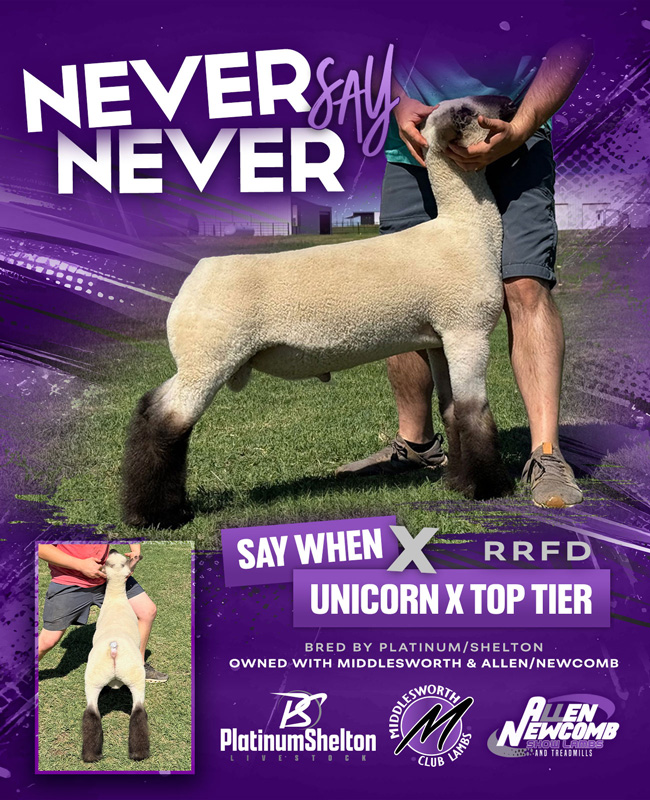 Raised by AWTR : Owned with AWTR & Alexander Club Lambs : Sold to Hambleton, NE